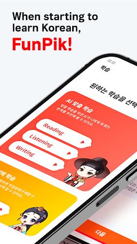 FunPik exploite l'IA pour élaborer un programme personnalisé, intégrant des éléments gamifiés pour vous garder engagé. Bénéficiez d'un contenu méticuleusement organisé développé par l'équipe d'experts de FunPik, régulièrement mis à jour et adapté au format de l'examen TOPIK.