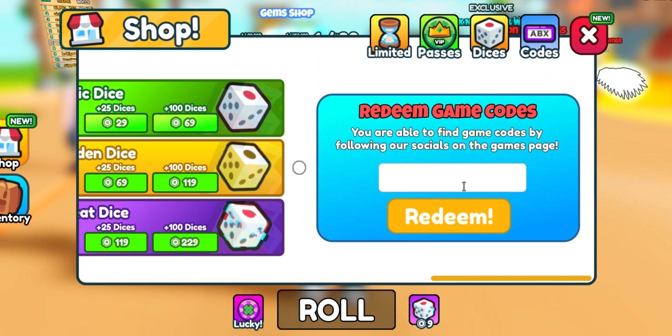 - Нажмите «Коды» в верхнем правом углу меню магазина.